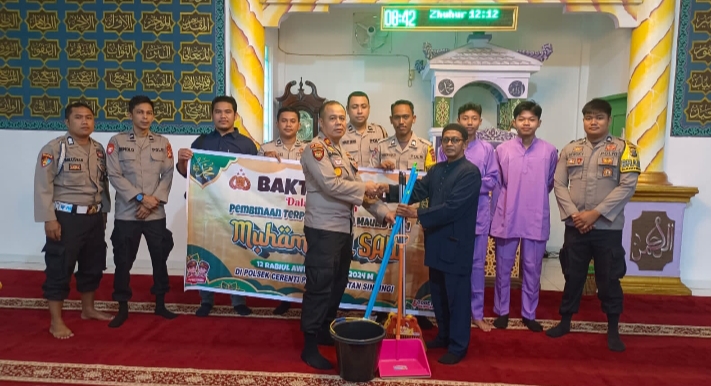 KUANSING (RIAU)gerbangdesanews.com-Polsek Cerenti laksanakan bakti sosial pembinaan terpadu dalam rangka menyambut Maulid Nabi Muhammad SAW 1446 H Tahun 2024 M, di Masjid Raudhatul Jannah desa Kampung Baru, Jumat, (14/9/24), sekira pukul 08.30 WIB.