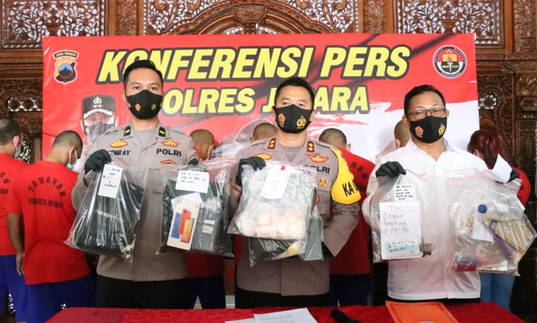 Lanjut Kapolres, 8 tersangka ini yakni SY (51) warga Karanggondang Kecamatan Mlonggo Jepara, SM (22) warga Tulakan Donorojo Jepara, NY (37) warga Kedungsarimulyo Welahan Jepara, MZ (31) warga Robayan Kalinyamatan Jepara, AS (40) warga Kedungmutih Wedung Demak, MV (38) warga Gelang Keling Jepara, AN (26) warga Sinanggul Mlonggo Jepara dan AR (37) warga Karanggondang Mlonggo Jepara.
