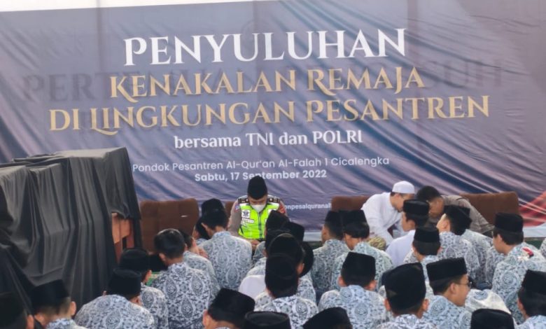 Seperti di Informasikan Kanit Lantas Polsek Cicalengka AKP Mocahamad Abdullah menyampaikan, dalam kegiatan ini pembekalan berupa Pemberian materi dan penyuluhan pencegahan tindak kekerasan serta kenakalan remaja di lingkungan pesantren bersama TNI dan POLRI di pondok pesantren Al – Quran Al – Falah 1 Cicalengka. Yang sering terjadi di wilayah-wilayah lain,