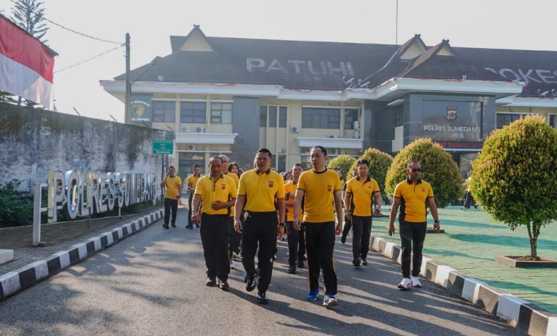 Kapolres Sumedang Pimpin Kegiatan Jalan Santai Bersama Personel Polres di Wilayah Pedesaan Sumedang