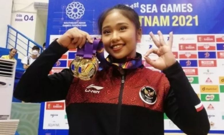 Pesenam Rifda Irfanaluthfi, peraih tiga medali SEA Games 2021 di Quan Ngua Gymnasium, Hanoi, Vietnam,