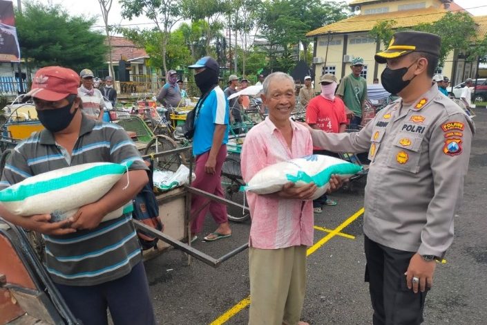 Tepat pukul 07.00 Wib Kapolres Sampang AKBP Arman S.IK, M.Si di dampingi Kabag Ops, Kabag SDM dan Kabag Log Polres Sampang Polda Jatim menyalurkan bantuan sosial berupa beras 10 Kg kepada tukang becak kayuh dan pemulung.