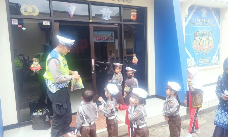 Kanit Lantas Polsek Cicalengka Polresta Bandung Polda Jabar, terima Kunjungan Siswa TK Dinar Ulumuddin Cikancung