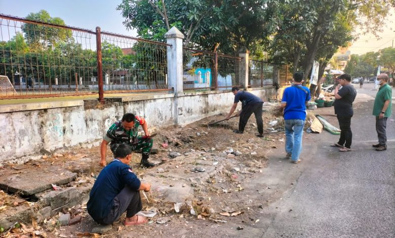Jelang Gelar Budaya Jarwana, Babinsa Jayengan dan Perangkat Kelurahan Kerja Bakti.