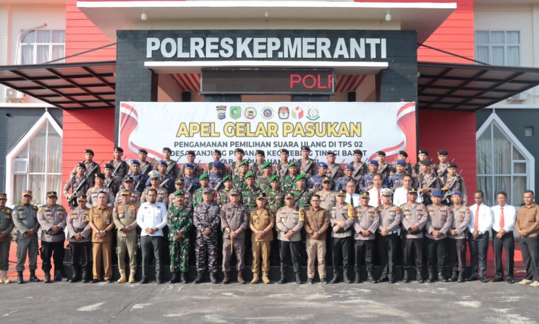 Meranti ,| Riau – gerbangdesanews.com-Kapolres Meranti AKBP Kurnia Setyawan memimpin Apel Gelar Pasukan di halaman Mako Polres Jalan Gagak Darussalam Kecamatan Tebing Tinggi Barat Kabupaten Kepulauan Meranti dalam rangka pengamanan pemungutan suara ulang di TPS 02 Desa Tanjung Peranap Kecamatan Tebing Tinggi Barat Kabupaten Kepulauan Meranti pada hari Senin, 24 Juni 2024, sekitar pukul 08.00 WIB.