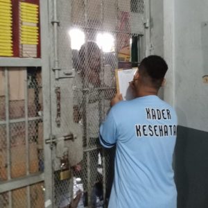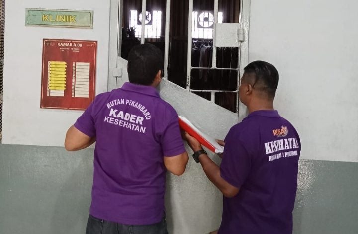 Gerbangdesanews.com,Pekanbaru – Rumah Tahanan Negara Kelas I Pekanbaru Kantor Wilayah Kementerian Hukum dan HAM Riau melakukan kontrol kesehatan pada setiap blok hunian oleh Petugas Medis yang dibantu oleh Kader Kesehatan.