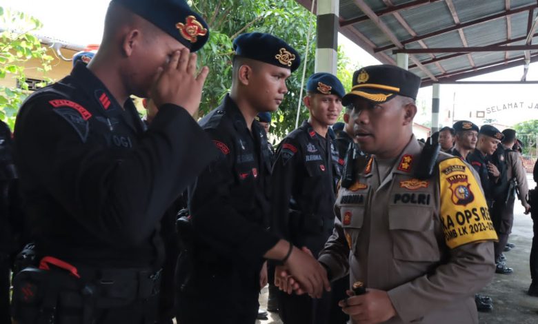 AKBP Kurnia Setyawan Sambut personil BKO Brimob dan Pam TPS 02 PSU Desa Tanjung Peranap