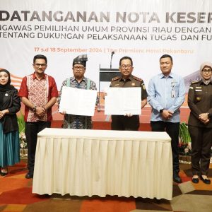 Adapun Penandatanganan Nota Kesepahaman antara Bawaslu Provinsi Riau dan Kejaksaan Tinggi Riau guna meningkatkan kerja sama dalam bidang hukum dan operasional, khususnya dalam rangka pelaksanaan proses demokrasi pemilu mendatang.