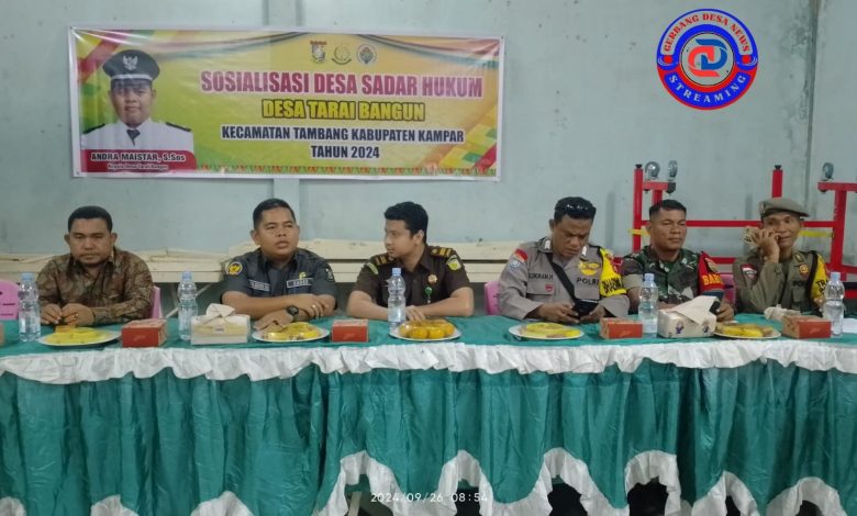 Kampar II gerbangdesanews.com – kec tambang .desa tarai bangun ,kamis tanggal 26 /9/2024 jam 8.30 pagi turut hadir dalam acara tersebut kepala desa tarai bangun bapak Andra maistar S sos,bapak M sadik SH beserta team dari kejaksaan negeri kabupaten Kampar , babinkamtibmas Bapak Bripka Lukman hakim ,babinsa bapak sertu dasroni, BKO satpol PP bapak suef, tokoh2 masarakat , tokoh2 agama dan masarakat desa tarai bangun
