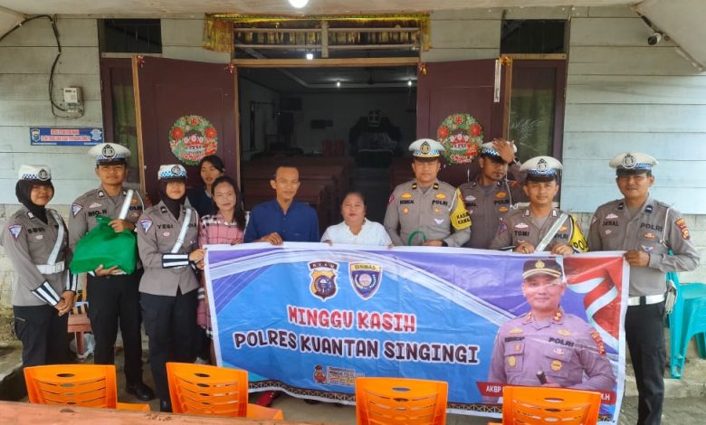 Dialog dengan Jemaat Gereja, Anggota Sat Lantas Polres Kuansing berdialog dengan jemaat, mendengarkan aspirasi, serta mendiskusikan berbagai permasalahan yang dihadapi oleh warga di wilayah tersebut. Pemberian Bantuan Sembako, Sebagai bentuk kepedulian terhadap masyarakat, Sat Lantas Polres Kuansing memberikan paket sembako sebanyak lima paket kepada jemaat gereja yang membutuhkan.