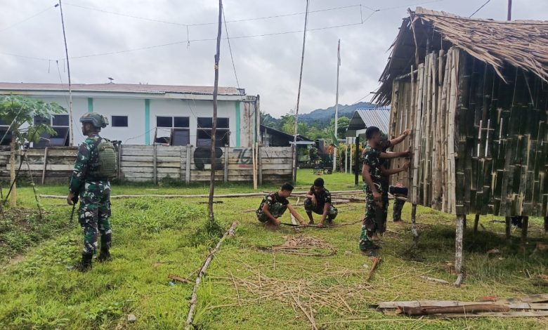 Sambut Perayaan Natal dan Tahun Baru 2025, Satgas Yonif 762/VYS Membuat Pondok Natal dan Pohon Natal