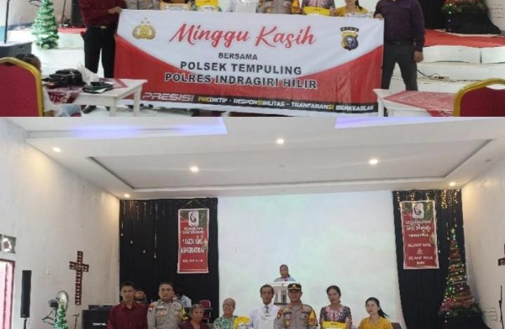 Gerbangdesanews.com,Tempuling – Inhil. Kapolsek Tempuling AKP Osben Samosir, SH dan Personilnya melaksanakan kegiatan Minggu Kasih di Gereja/Rumah Ibadah yang ada di wilayah Kecamatan Tempuling dengan menjalin Persaudaraan dan Persatuan Pasca Pilkada 2024 dengan Pendeta dan Jemaat Gereja guna menciptakan situasi yang aman dan kondusif menyambut Natal dan Tahun Baru di wilayah Kecamatan Tempuling.