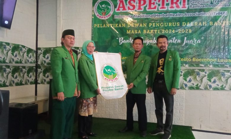 Asosiasi Pengobat Tradisional Ramuan Indonesia (ASPETRI) Banten, Dewan Pengurus Daerah (DPD) melakukan pelantikan bagi para pengurus yang terpilih untuk masa bakti 2024-2028. Pelantikan berlangsung di Cafe Resto Bumboe Lawas Jl.Jelupang Tangerang Selatan pada hari Minggu 10 Maret 2024.
