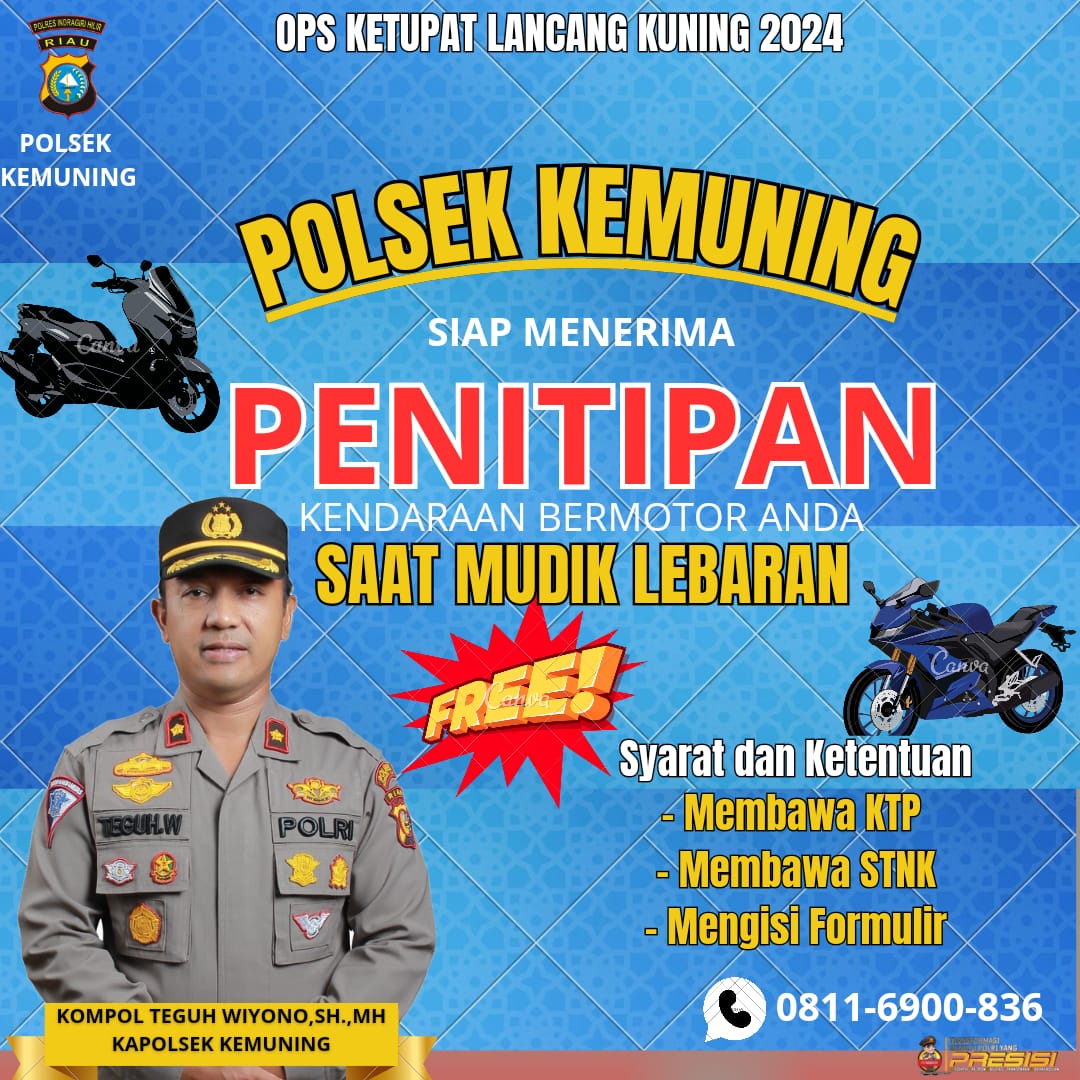Kapolsek Kemuning Kompol Teguh Wiyono S.H M.H mengatakan, masyarakat dapat mendaftarkan kendaraannya untuk dititipkan ke polsek Kemuning.