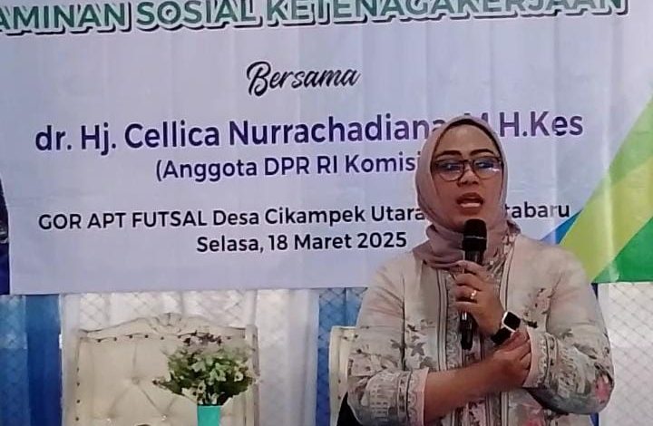 Karawang | Gerbangdesanews.com – Kotabaru , dr. Hj. Cellica Nurrachadiana, M.H Kes Anggota DPR RI Komisi IX Partai Demokrat bersama BPJS Ketenagakerjaan Kabupaten Karawang menggelar sosialisasi Program Jaminan Sosial Ketenagakerjaan.