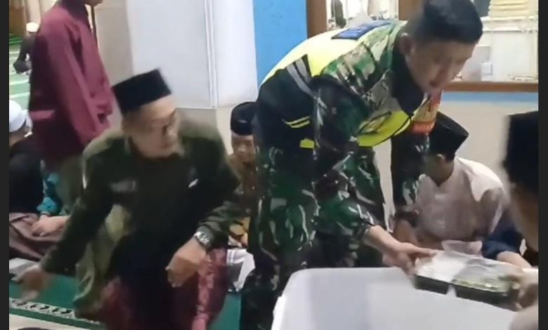 Tanjungsari, Sumedang | Gerbangdesanews.com – Jum’at, 21 Maret 2025 , Dalam semangat berbagi di bulan suci Ramadan, sejumlah prajurit TNI dan Polri dari Koramil 1004 Tanjungsari serta Polsek Tanjungsari, yang dipimpin oleh Kapten Inf Agus Hermawan, kembali menggelar aksi Jum’at Berkah Ramadhan. Berbeda dari kegiatan sebelumnya, kali ini mereka mengadakan Serbuan Sahur, yaitu pembagian makanan sahur kepada jamaah yang tengah melaksanakan tadarusan di Masjid Besar Tanjungsari, Kabupaten Sumedang, pada Jumat (21/3) dini hari sekitar pukul 03.00 WIB.
