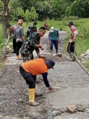 Babinsa Serda Indrayana, menekankan pentingnya kolaborasi antara aparat Kewilayahan dan masyarakat dalam membangun infrastruktur yang bermanfaat bagi semua.