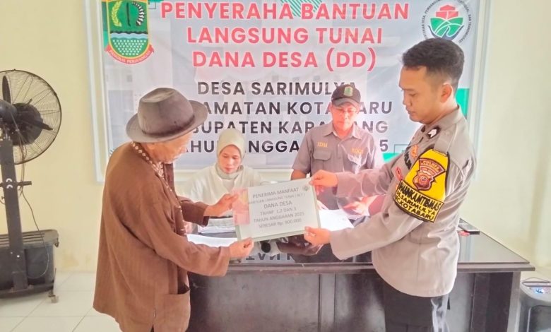 Karawang | Gerbangdesanews.com – Kotabaru , Bhabinkamtibmas Desa Sarimulya Polsek Kotabaru Polres Karawang Polda Jawa Barat Briptu Deri Eryana melaksanakan monitoring kegiatan pembagian Bantuan Langsung tunai dana Desa Tahun anggaran 2025. Rabu (26/03/2025).