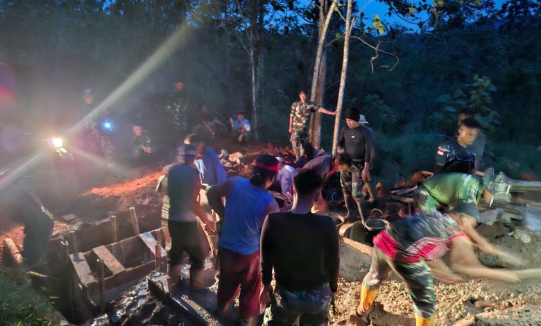 “Walaupun malam hari, kami tetap lanjutkan pekerjaan karena ini demi kebaikan masyarakat. Lampu motor kami manfaatkan agar proses pengecoran tetap berjalan,” ujar Dansatgas TMMD Letkol Kav Christian Gordon Rambu M.Si(Han)
