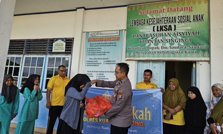 Kegiatan Jumat Barokah kali ini berlangsung di Kecamatan Kuantan Tengah Wilayah Hukum Polres Kuansing dengan menyerahkan bantuan berupa sembako kepada keluarga lansia dan kurang mampu serta Panti Asuhan Aisyiyah Desa Beringin Taluk. Bantuan ini merupakan hasil infaq yang dikumpulkan dari personel Polres Kuansing, sebagai wujud kepedulian terhadap masyarakat yang membutuhkan di wilayah hukum Polres Kuansing.