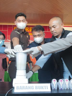 Pemusnahan barang bukti dilakukan secara terbuka dan disaksikan langsung oleh unsur penegak hukum serta instansi terkait. Proses pemusnahan dilakukan dengan cara melarutkan sabu ke dalam air, kemudian diblender dan dicampur dengan deterjen agar tidak dapat disalahgunakan kembali.