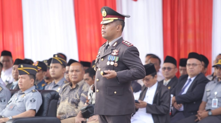 Kapolres Kepulauan Meranti AKBP Kurnia Setyawan memimpin dengan penuh semangat Upacara Hut Bhayangkara ke-78 Tahun 2024 di Polres Kepulauan Meranti Di Mako Polres Kepulauan Meranti, Jl. Insit Gogok Darussalam, Kec. Tebing Tinggi Barat, Kabupaten Kepulauan Meranti.