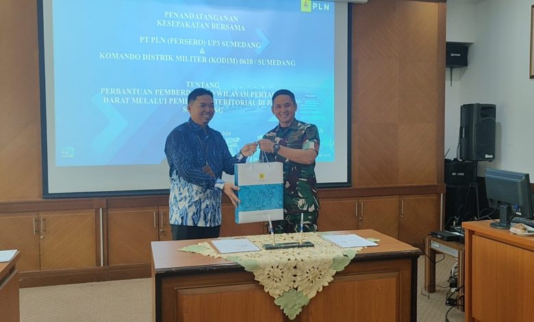Sumedang || gerbangdesanews.com – Dalam upaya memperkuat sinergi antara sektor ketenagalistrikan dan pertahanan wilayah, PLN UP3 Sumedang resmi menandatangani Kesepakatan Bersama dengan Kodim 0610/Sumedang terkait Perbantuan Pemberdayaan Wilayah Pertahanan Darat Melalui Pembinaan Teritorial.