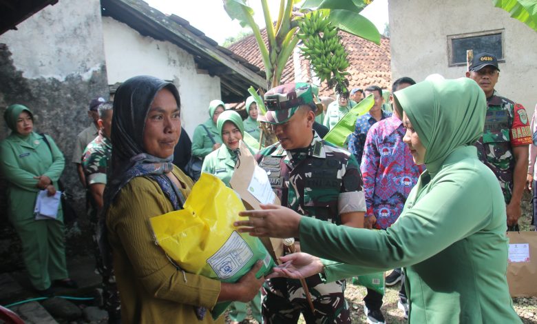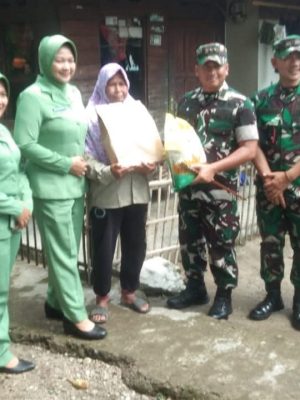 Didampingi Ketua Dandim 0610 Sumedang Menyalurkan Bantuan Paket Sembako Bagi Warga Terdampak Abrasi Sungai Cikandung