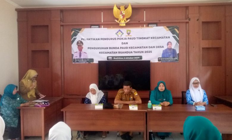 Gerbangdesanews.id – Sumedang , Buahdua, 6 Oktober 2025 – Pemerintah Kecamatan Buahdua bersama Bunda PAUD Kecamatan Buahdua resmi melantik Kelompok Kerja (Pokja) Bunda PAUD se Kecamatan Buahdua. Kegiatan ini berlangsung di aula Kecamatan Buahdua dan dihadiri oleh Camat Buahdua H Kiki Hakiki, S.Ag, MM , Bunda Paud Kecamatan Buahdua, Bunda Paud Desa, anggota PKK Desa serta kepengurusan Himpaudi.