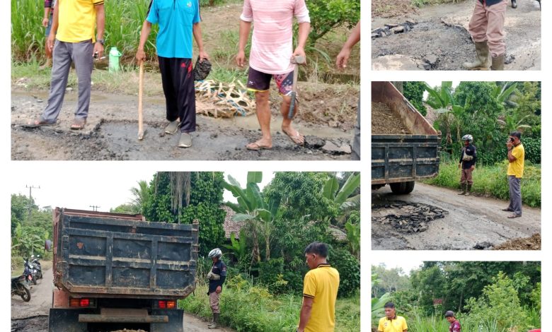Kepala Desa Dwijaya Wawan Hadi Suwito Turun Langsung Untuk Pemeliharaan Dan penanggulangan jalan Berlubang Demi Masyarakat