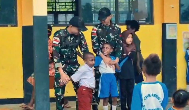 Gerbangdesanews.com | Fef – Dalam rangka meningkatkan wawasan kebangsaan sejak dini, Satgas Pamtas RI-PNG Kewilayahan Yonif 763/SBA melaksanakan kegiatan mengajar di SD YPPK ASES Fef dengan memberikan materi Bela Negara kepada para siswa. (7/11/2025).