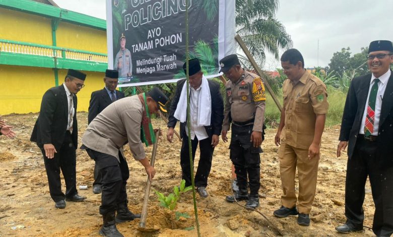 Kapolsek Bagan Sinembah Sosialisasikan Program Green Policing dan Laksanakan Penanaman Pohon di Ponpes Al-Majidiyah